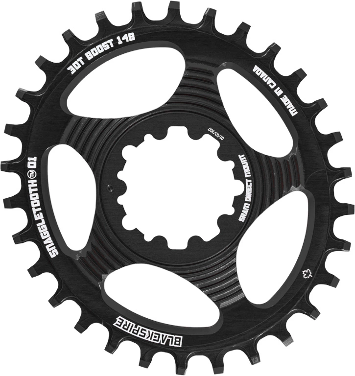 Pushing you on with precision, this Blackspire Snaggletooth chainring features a tough aluminium build. This makes it perfect at handling all the abuse that the woodland throws at you as you blast over rock gardens, tree roots and debris with style. Blackspire has also raised the bar by putting this sleek model through a CNC-machining process which shaves off any unnecessary weight. This allows you to enjoy its incredible strength without weighing down your ride with excess grams.