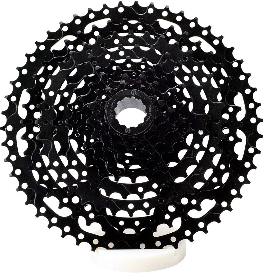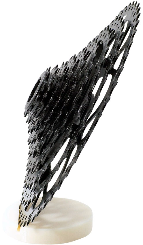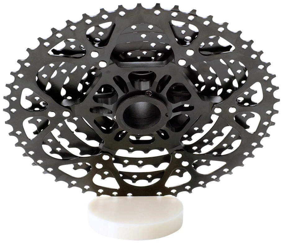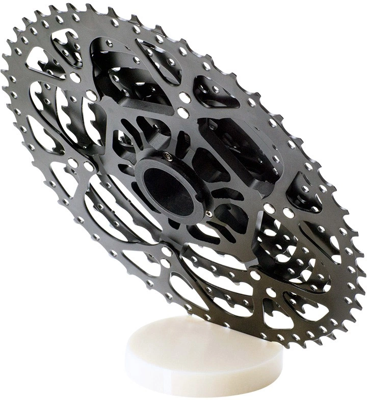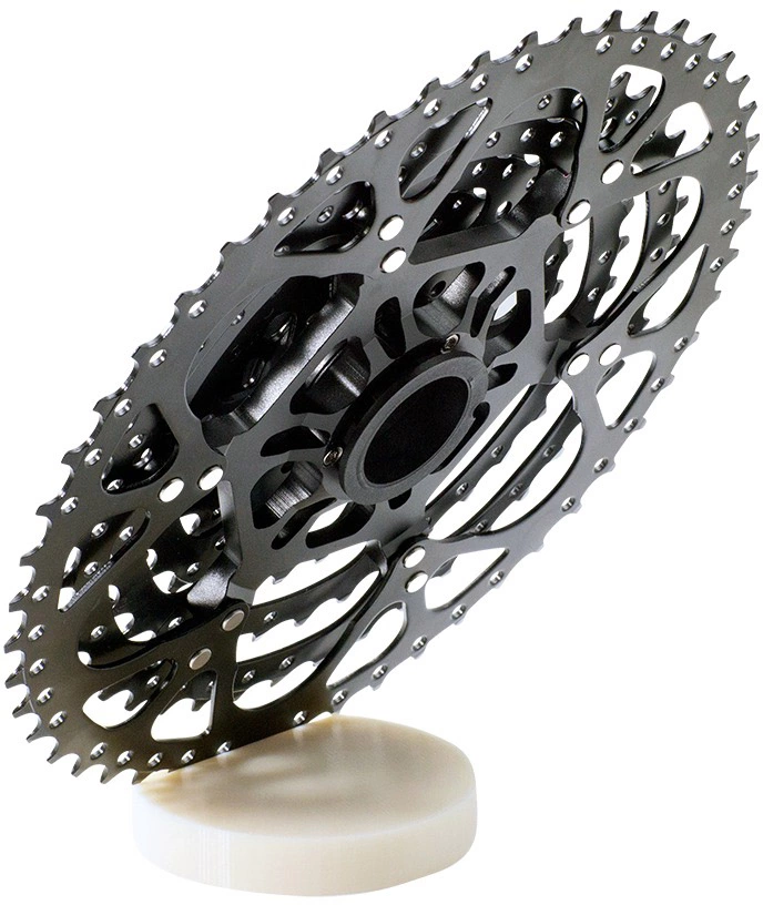 This Box Three cassette draws from both of its Box One and Box Two siblings to create a sensible all-rounder. All of this model’s cogs are stamped from steel and subsequently, the larger ones are pinned to steel spiders. The main difference here versus Box Two is the use of additional weight-reducing holes on its cogs.