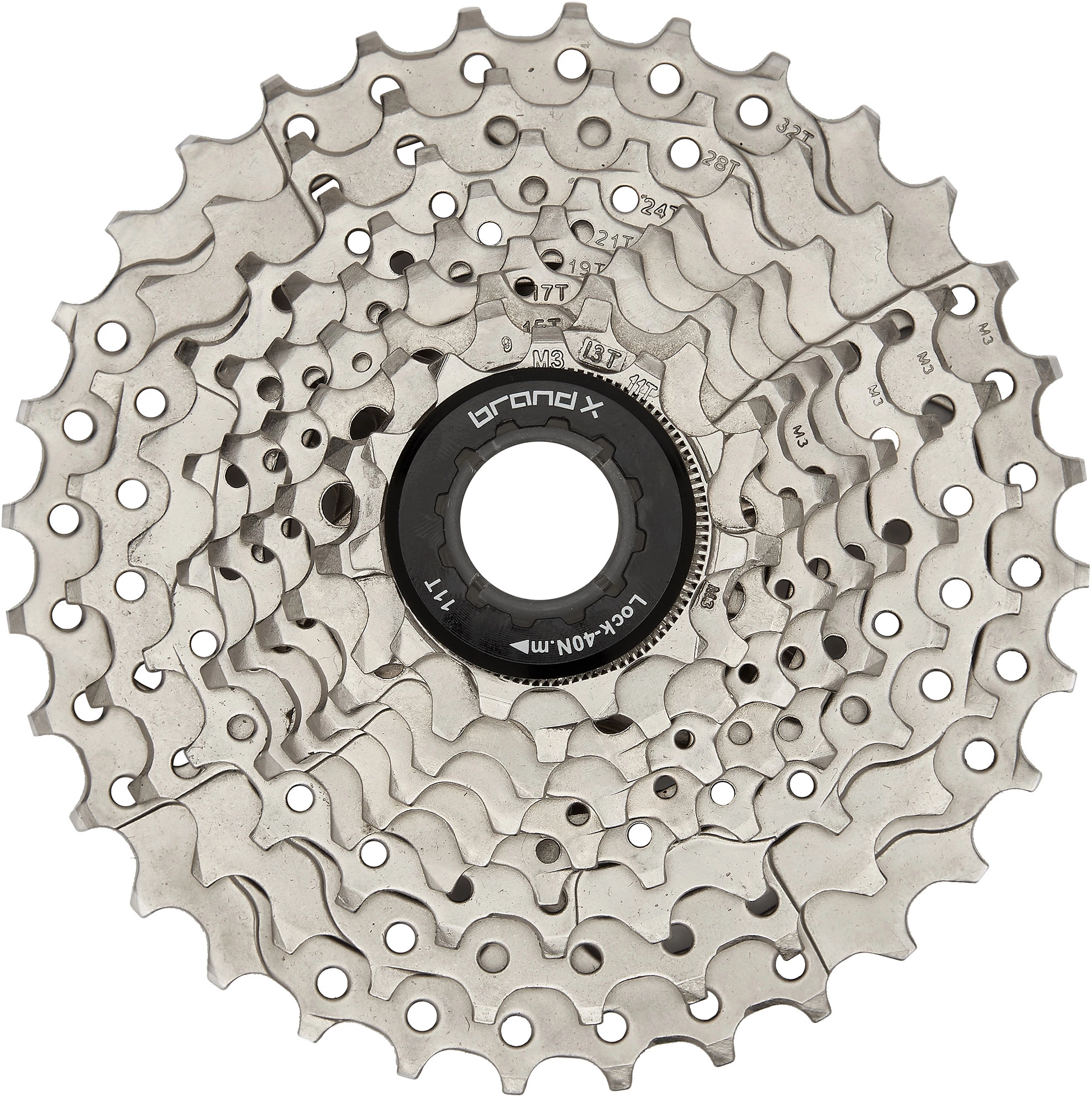 The Brand-X 9 speed 11-32t MTB cassette is the perfect replacement for your 9 speed cassette. The cassette uses a standard Shimano HG spline and is made from high tensile steel so it’s super hard wearing. The tooth profile has been optimised to aid gear changes and reduce noise.