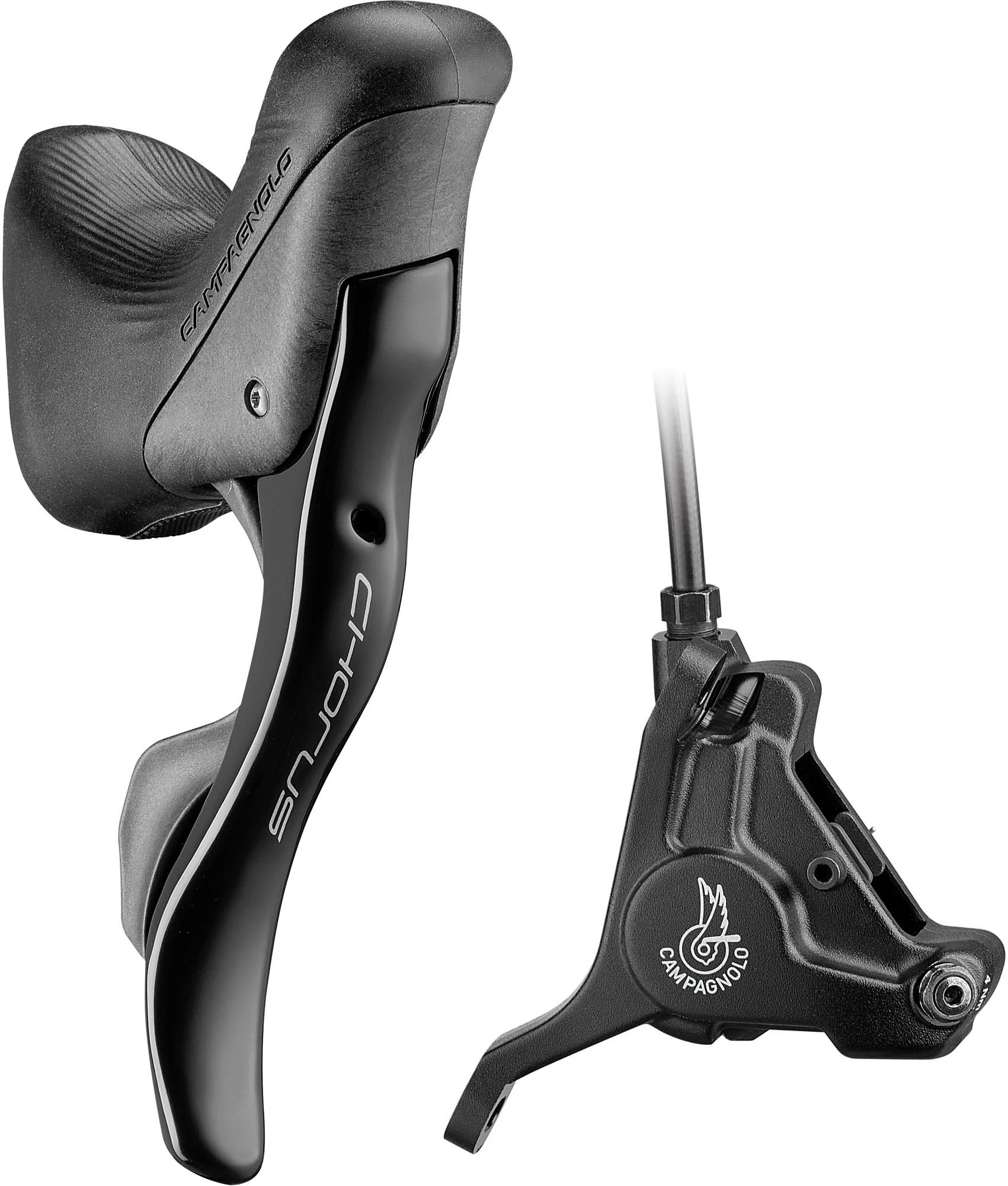 12x Chorus Hydraulic Ergo levers and disc calipers for use with the disc brake groupset. These are now being supplied pre-filled with hydraulic fluid.
