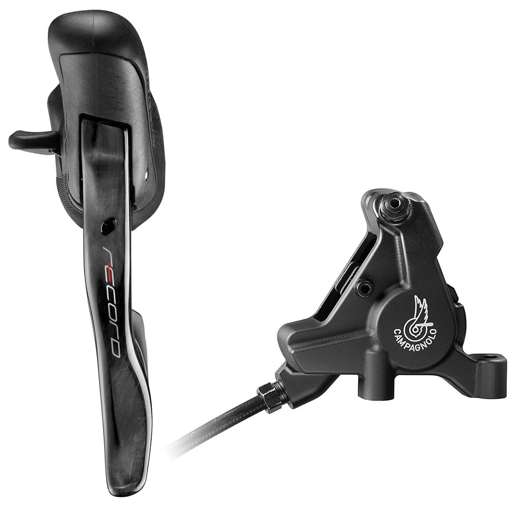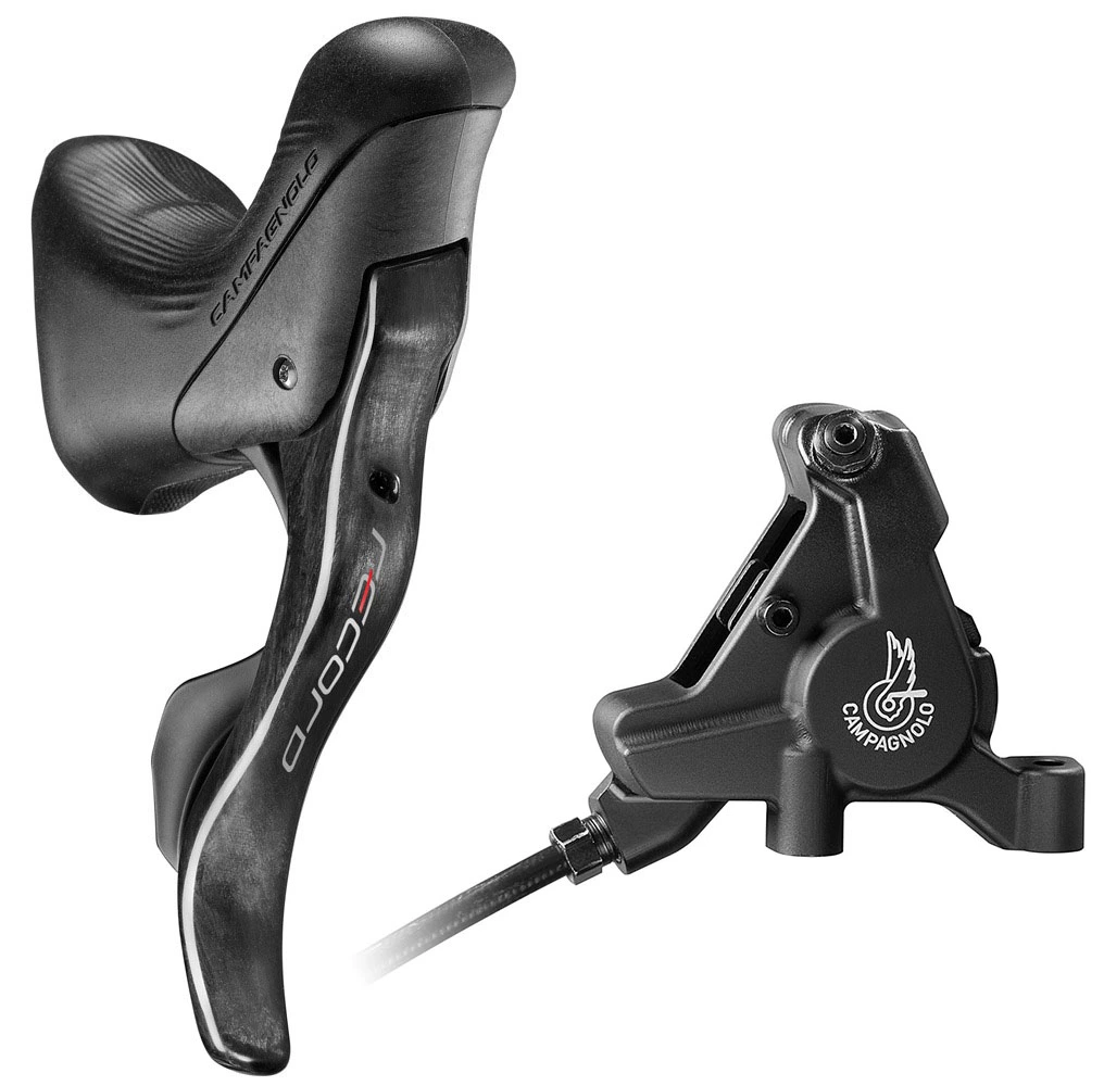 Engineered for complete control in all road cycling situations, this kit pairs an Ergopower Record 12 Speed Disc Brake controller with a brake caliper for powerful braking performance, greater ergonomics and an easier-to-maintain set-up. Benefitting from many of Campagnolo’s finest technologies including Vari-Cushion, One lever-One action, AMS Adjustment and an Ultra-Shift System, this disc brake also offers a wide range of features and personalisation, so riders can fine-tune their braking and shifting performance to match their riding style or the terrain conditions.