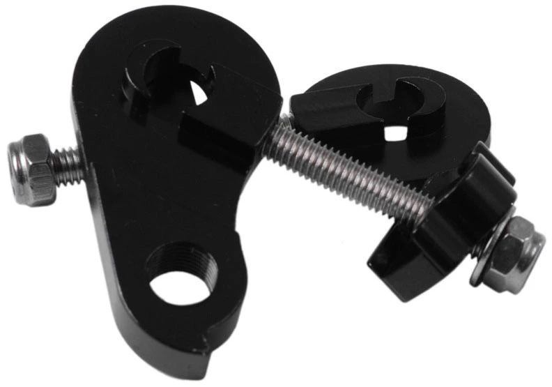 These DMR chain tugs with hanger are designed to keep your 10mm axle hub in place within your 10mm horizontal dropout frame. These DMR chain tugs are adjustable from side to side at the point of contact with the dropout to keep the tugs perfectly square.