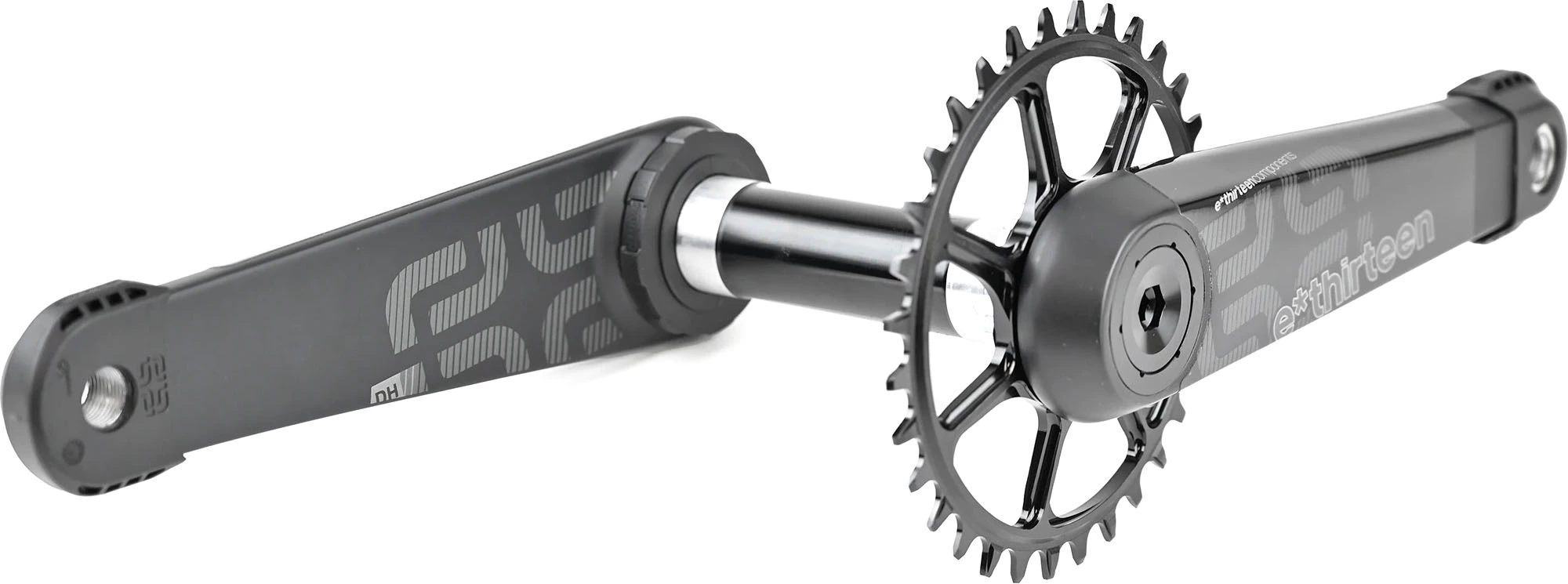World Cup proven for years, and in contrast to e.thirteen’s Gen3 carbon cranks, the Q Factor, overall profile, and volume of these Gen4 cranks has been greatly reduced. The spindle has been moved to the non-drive side for easier chainguide setup and drivetrain maintenance. Its adjustable chainline accommodates non-Boost, Boost, and Super Boost setups. Finally, all cranks now include an 8mm self-extractor.