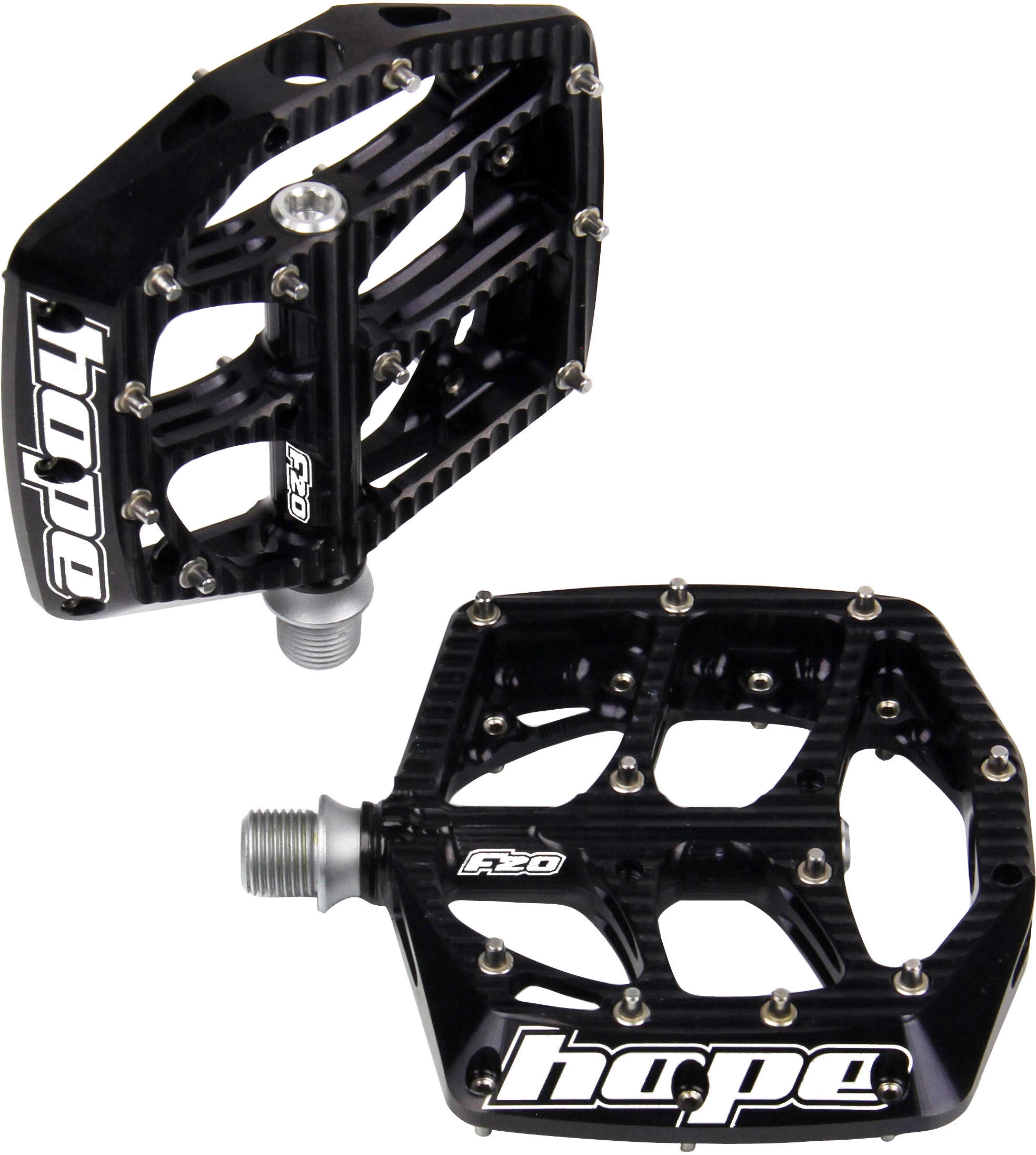 Die F20 Achse wurde aus hochfestem Cr-Mo hergestellt, Wärme behandelt und beschichtet. Die Trittfläche besitzt eine leicht konkave Form und wird durch eine Norglide Lagerbuchse und 3 Industrielager in einer komplett abgedichteten Kammer unterstützt, um eine lange Lebensdauer und ein wartungsfreies Laufen zu gewährleisten. Die 20 austauschbaren Stifte pro Pedal bieten außergewöhnlich gute Bodenhaftung und Grip.