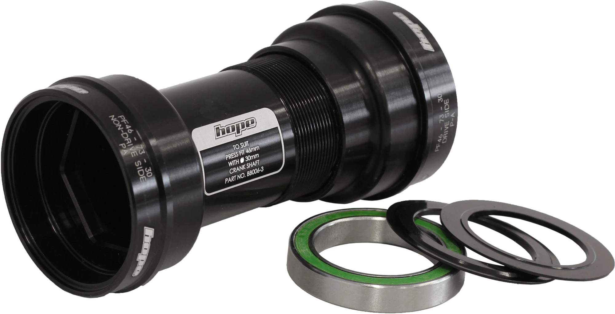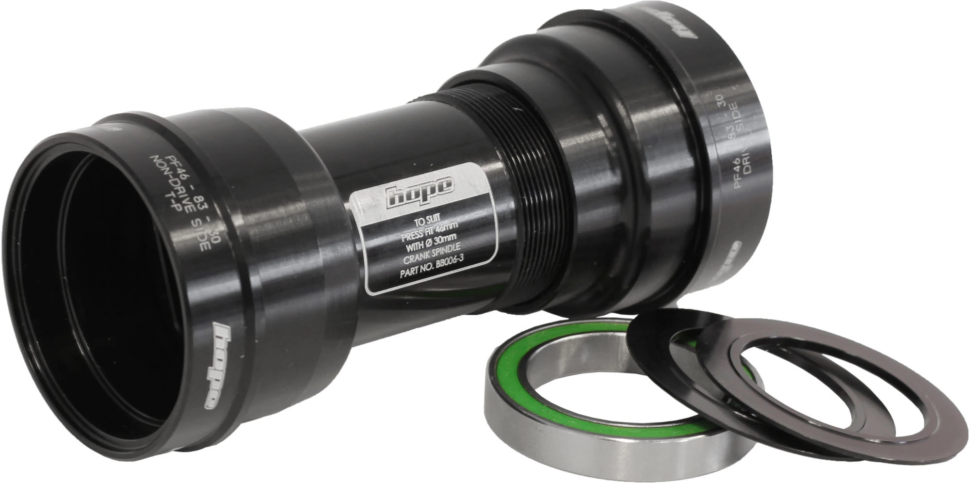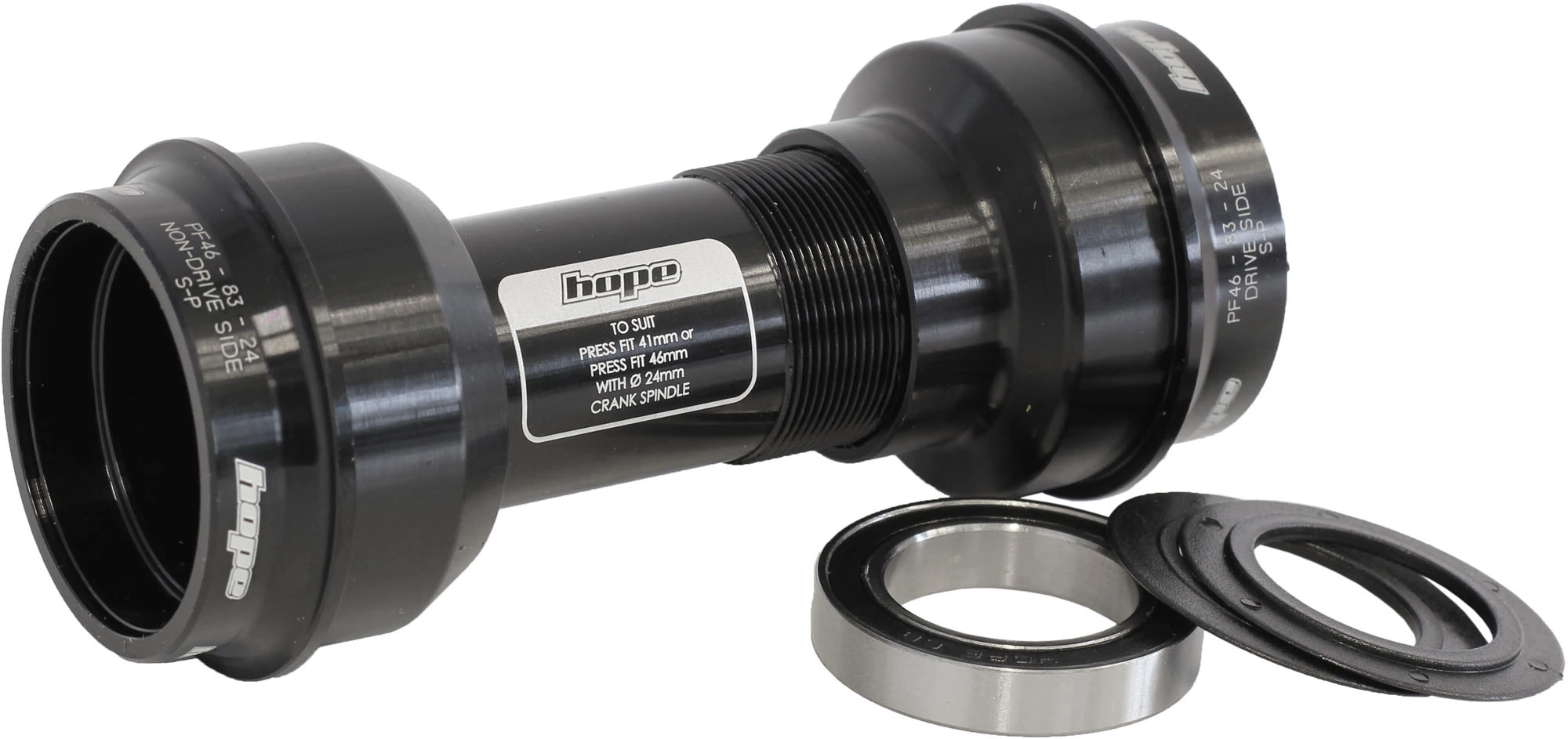 Hope verwendet eine kontaktfreie, frei laufende Labyrinthdichtung, um das Außenlager zu schützen, gleichzeitig wurde das Innenrohr aus gefrästem Aluminium intern mit Dichtungsscheiben abgedichtet. Dieses Innenlager eignet sich für 73 mm und 83 mm breite Gehäuse.
