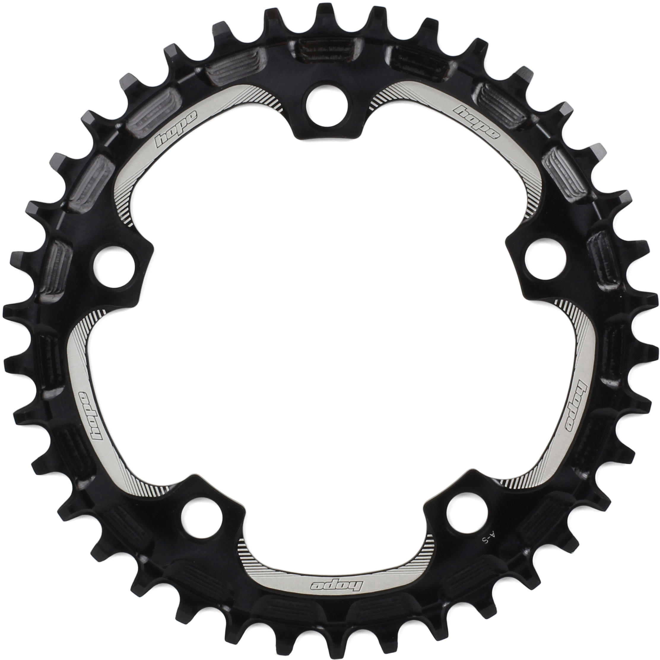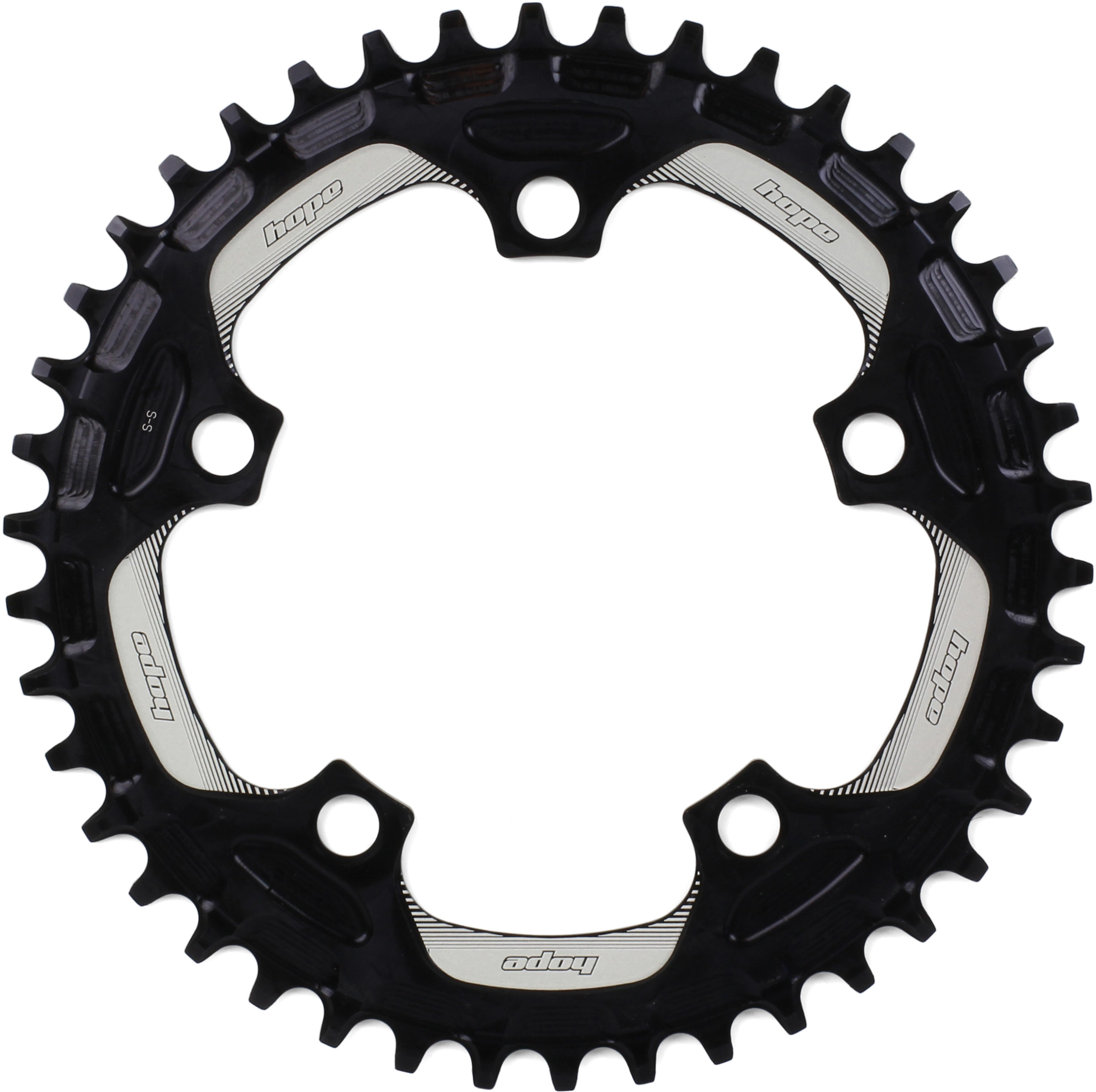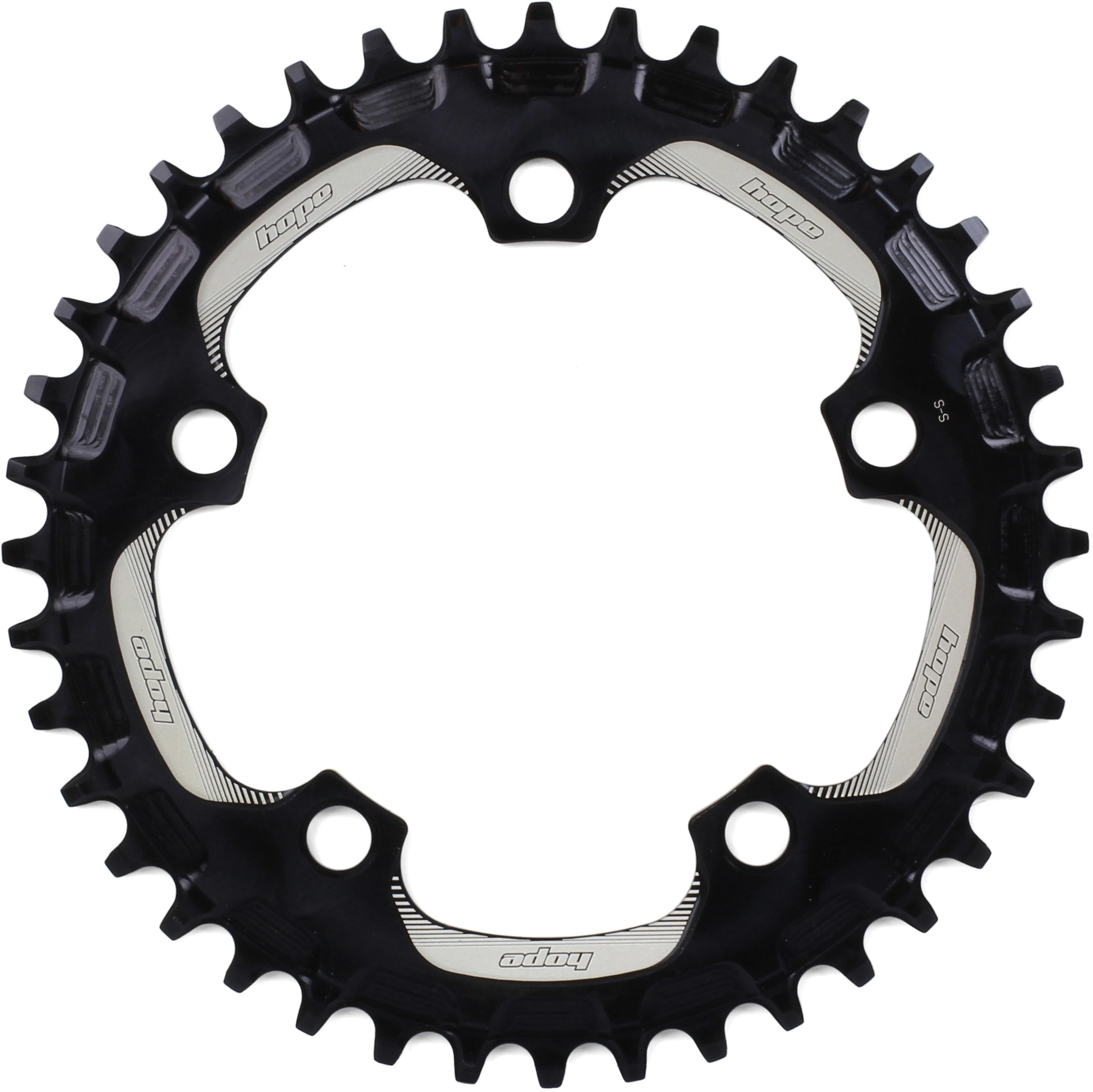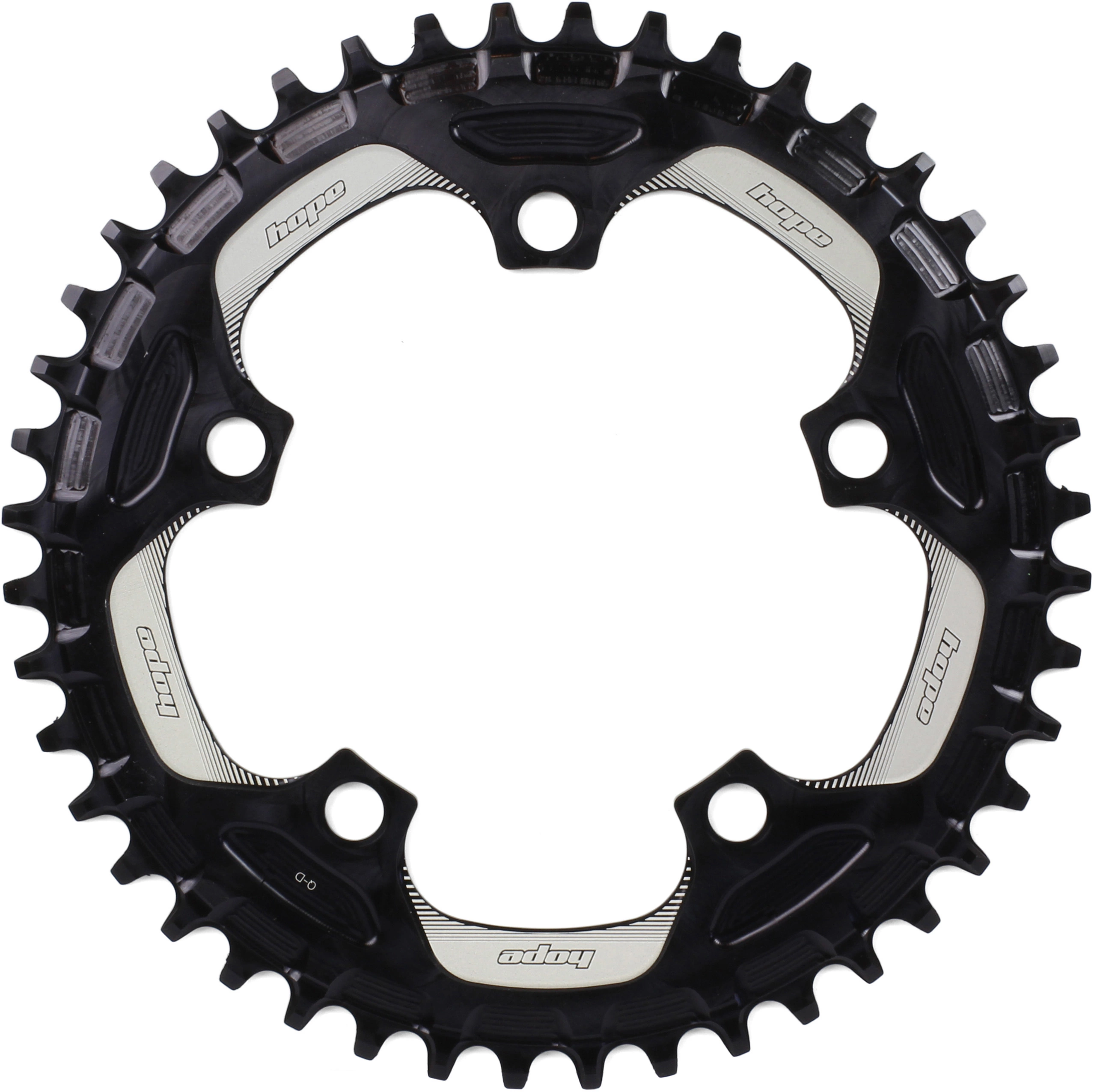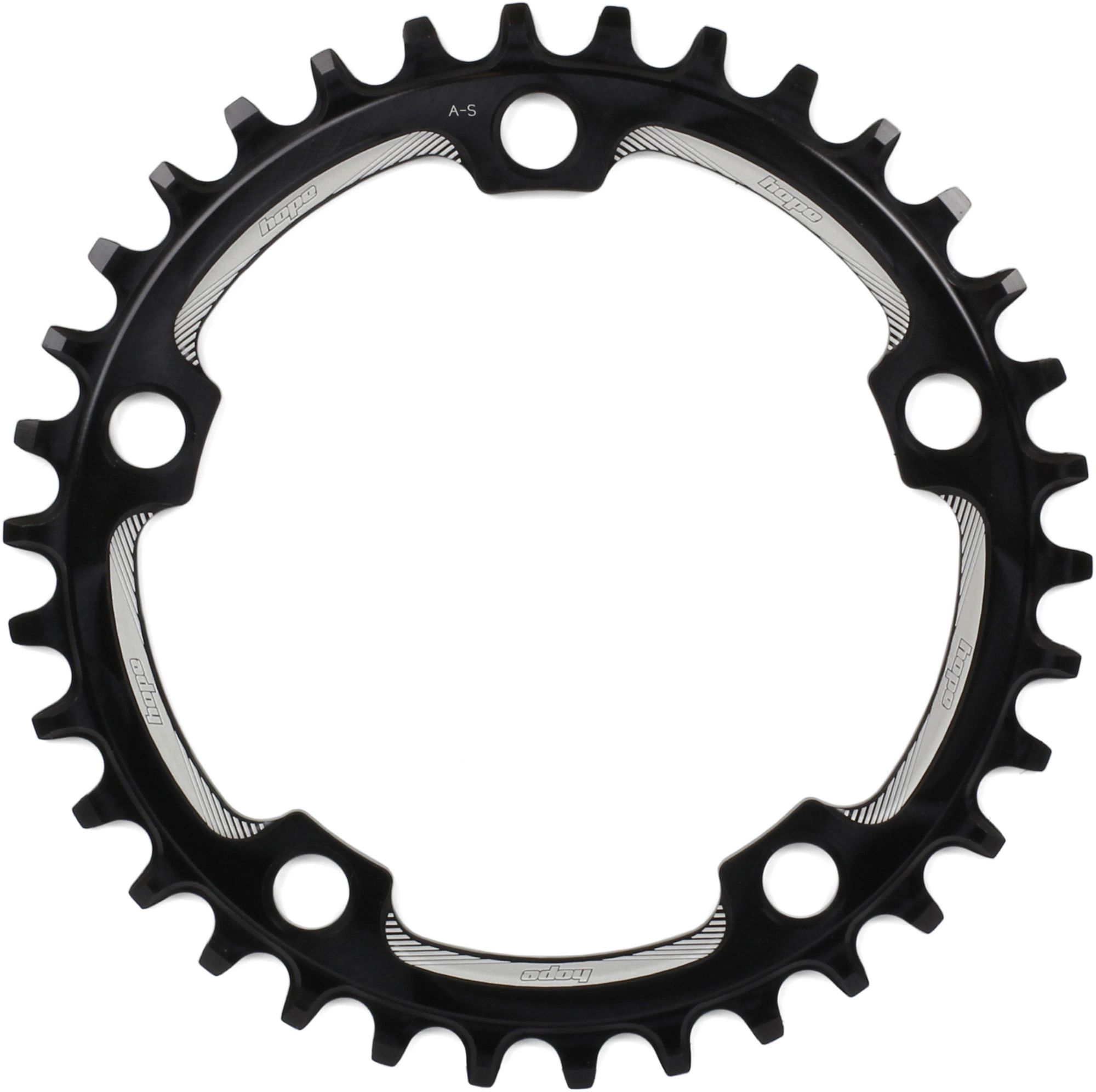 Eine harte, eloxierte Oberflächenbeschichtung macht dieses Kettenblatt strapazierfähig und erhöht die Langlebigkeit.
