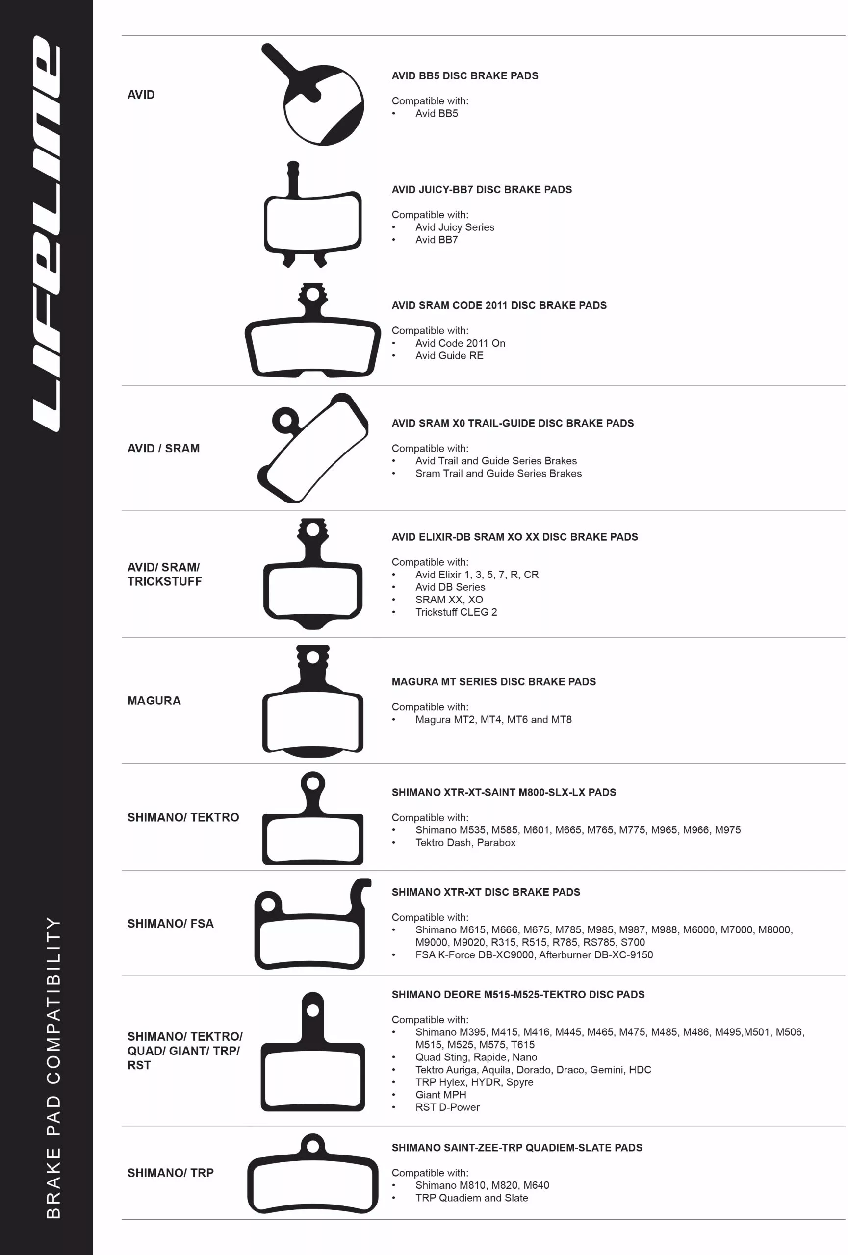 Klicken Sie HIER für die LifeLine-Kompatibilitätstabelle für Bremsbeläge.