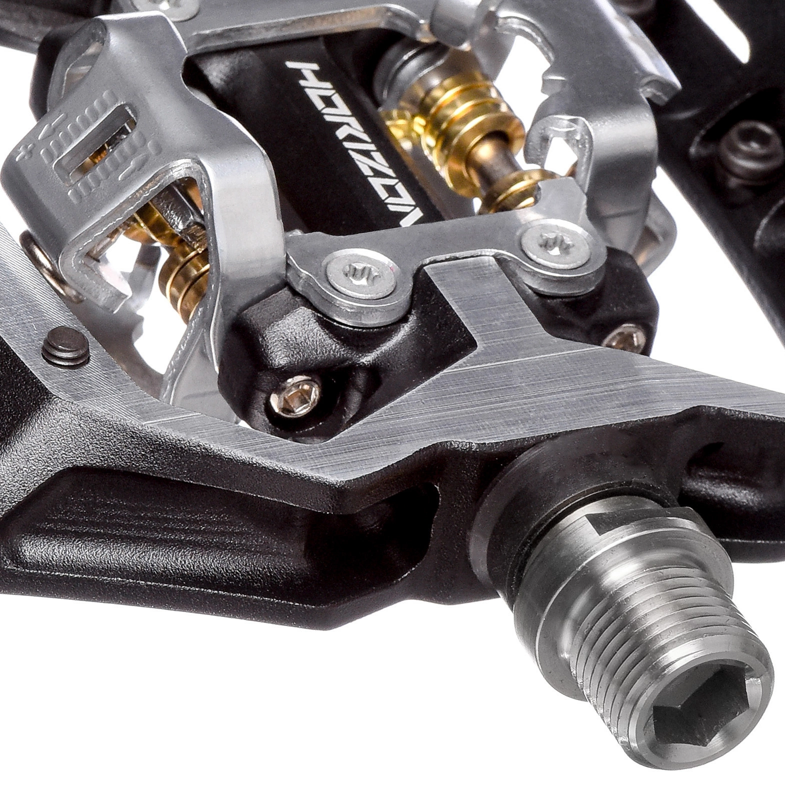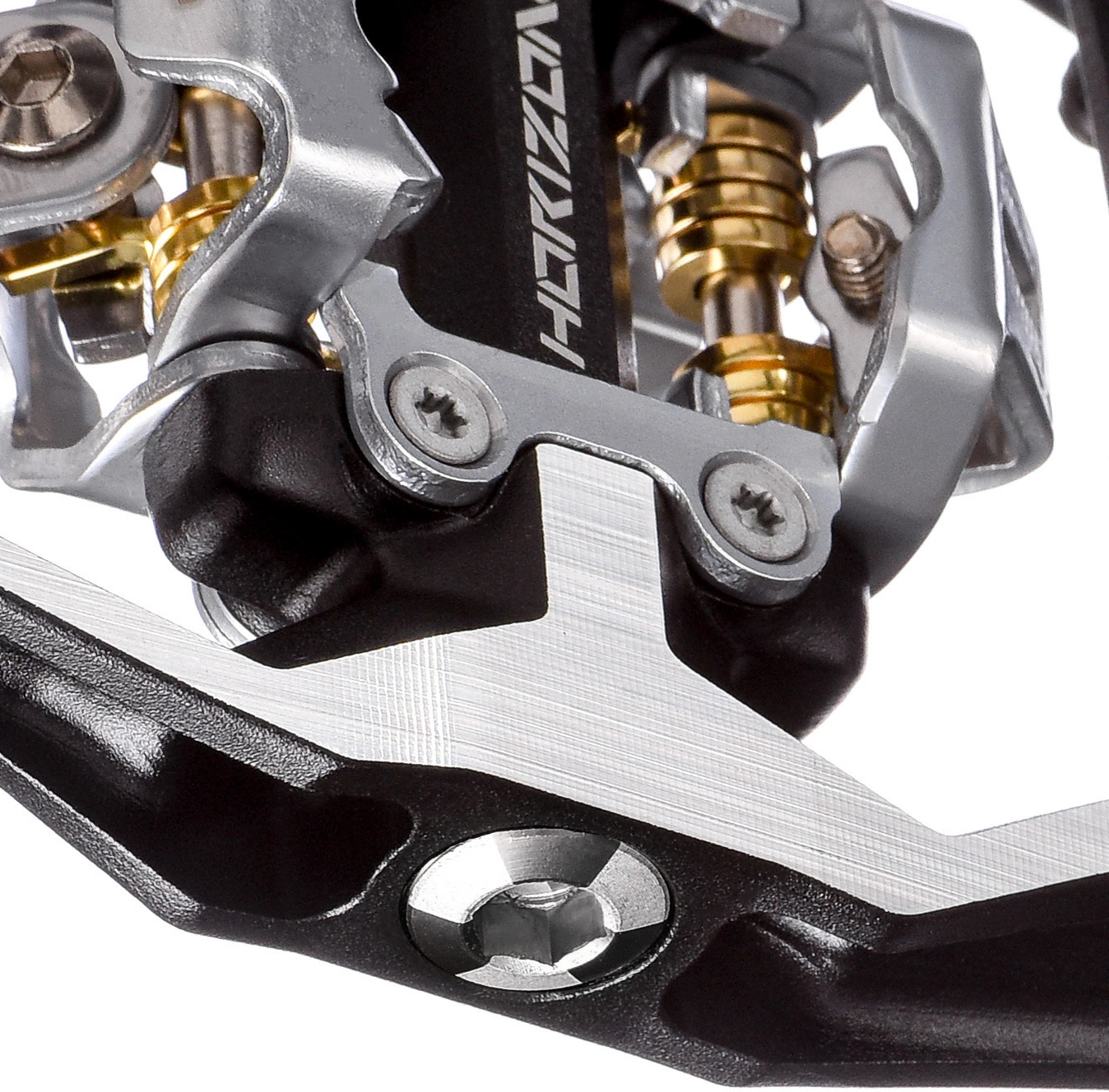 Das SPD-Cleat-Aufnahmesystem ist beidseitig und einzigartig für Nukeproof. Es unterstützt jedoch auch alle SPD-Vorrichtungen anderer Marken. Die Pedale werden mit Cleats geliefert, die +4 Grad Seitenspiel bieten. Ein Cleat mit +8 Grad Seitenspiel kann separat erworben werden.