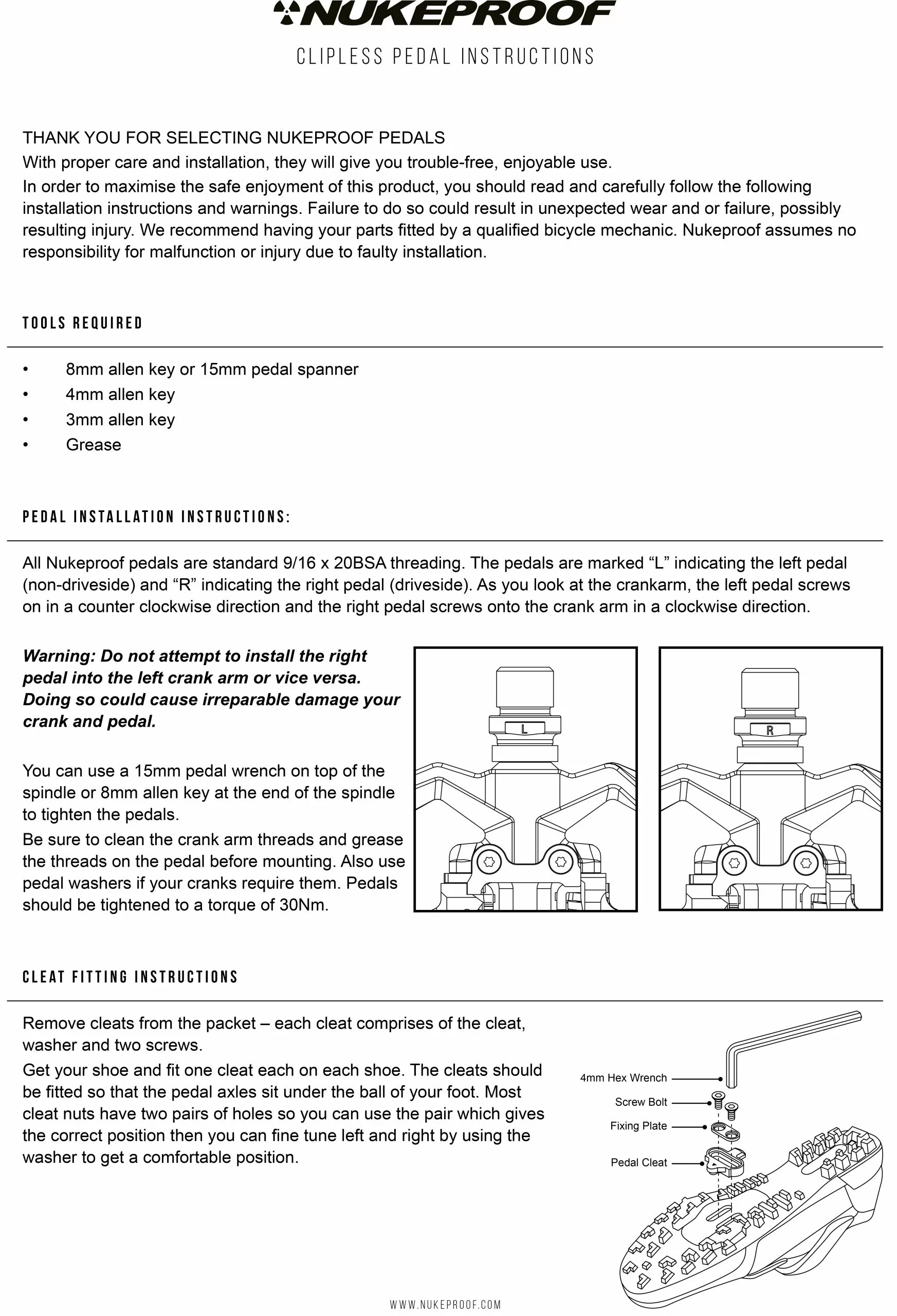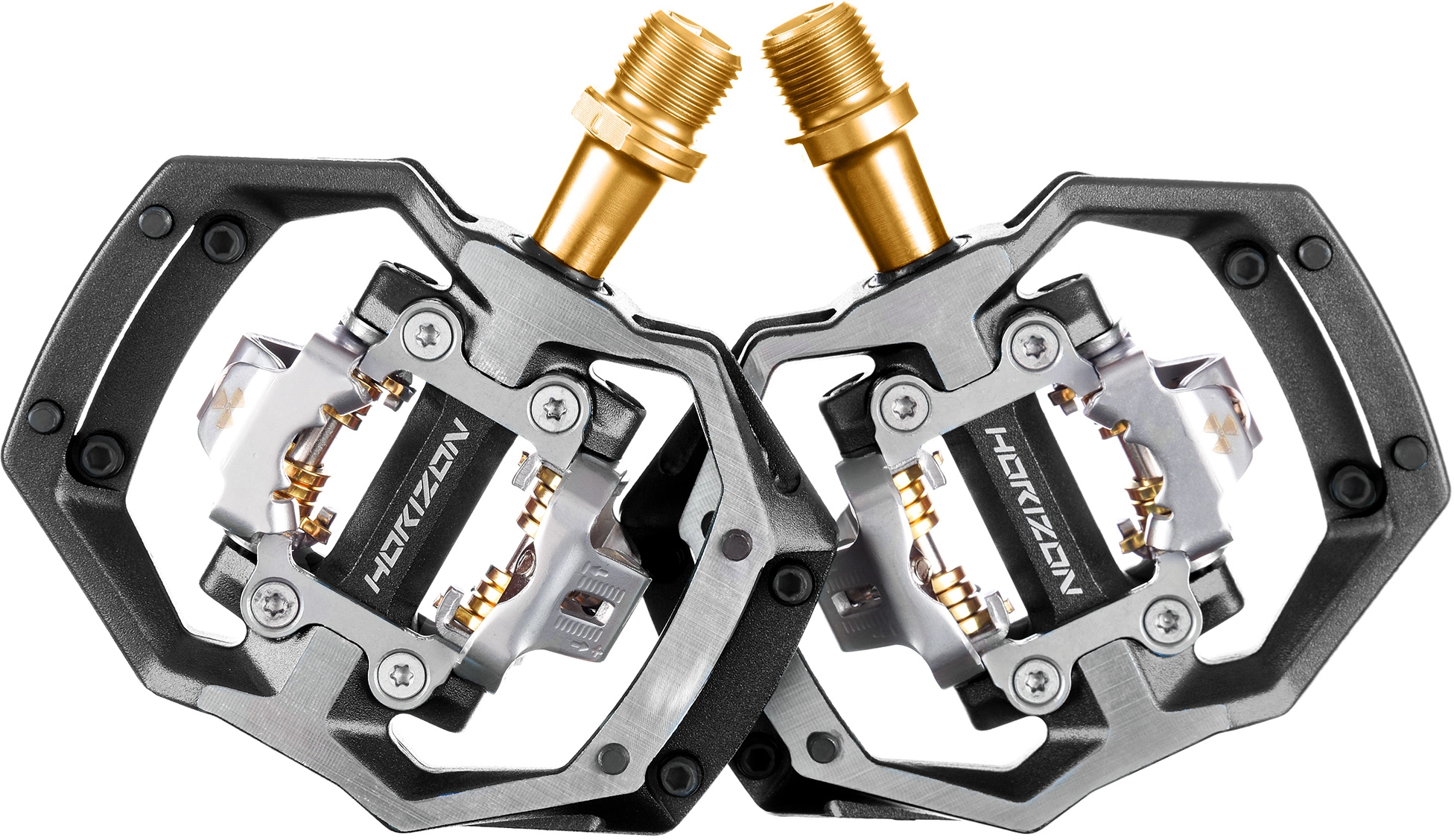 Das SPD-Cleat-Aufnahmesystem ist beidseitig und einzigartig für Nukeproof. Es unterstützt jedoch auch alle SPD-Vorrichtungen anderer Marken. Die Pedale werden mit Cleats geliefert, die +4 Grad Seitenspiel bieten. Ein Cleat mit +8 Grad Seitenspiel kann separat erworben werden.