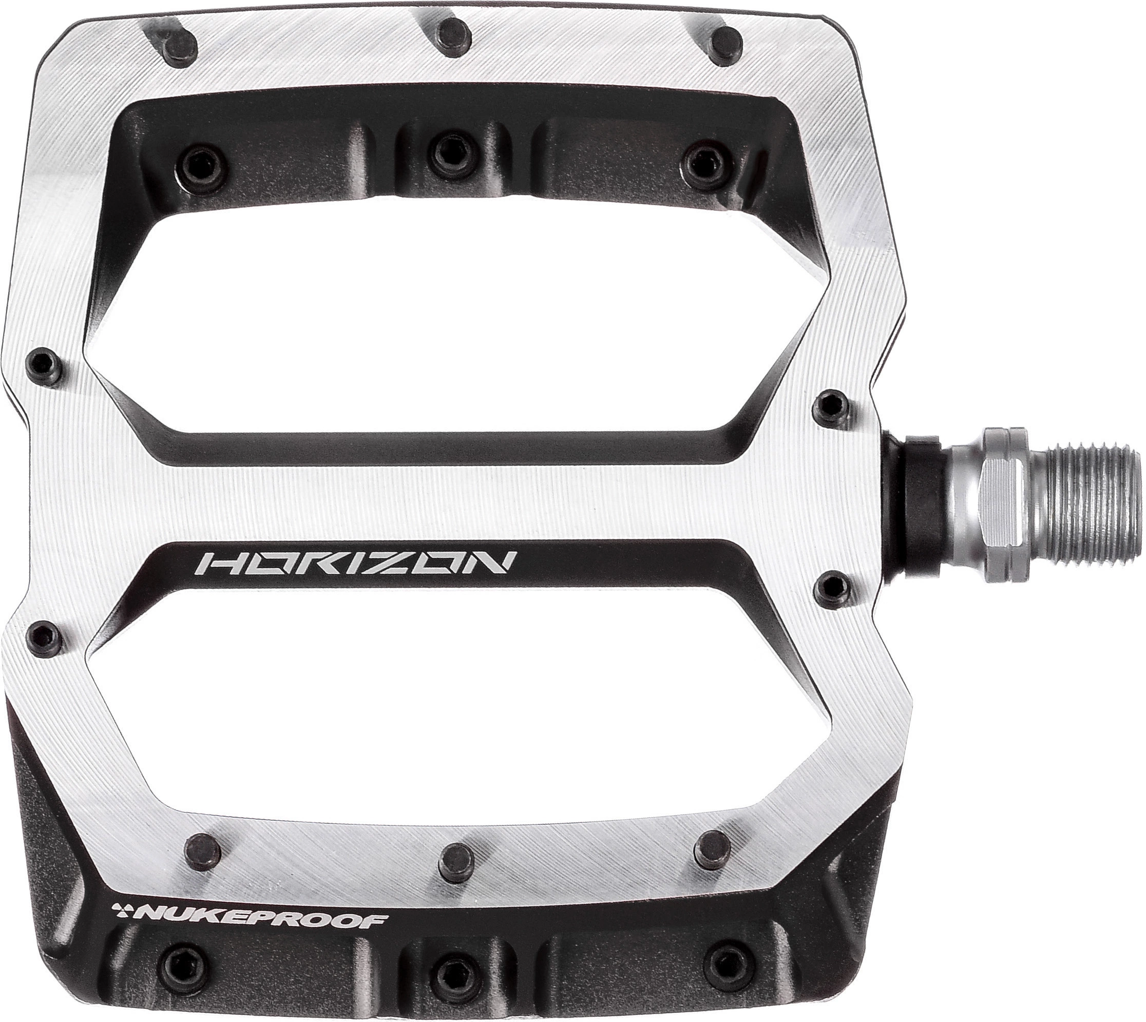 In Zusammenarbeit mit dem fünffachen Downhill-Weltmeister Sam Hill hat Nukeproof hat ein flaches Pedal entwickelt, das eine große Plattform, einstellbare Stifte und abgewinkelte Seitenflächen besitzt, um die Umlenkung von Hindernissen zu erleichtern.