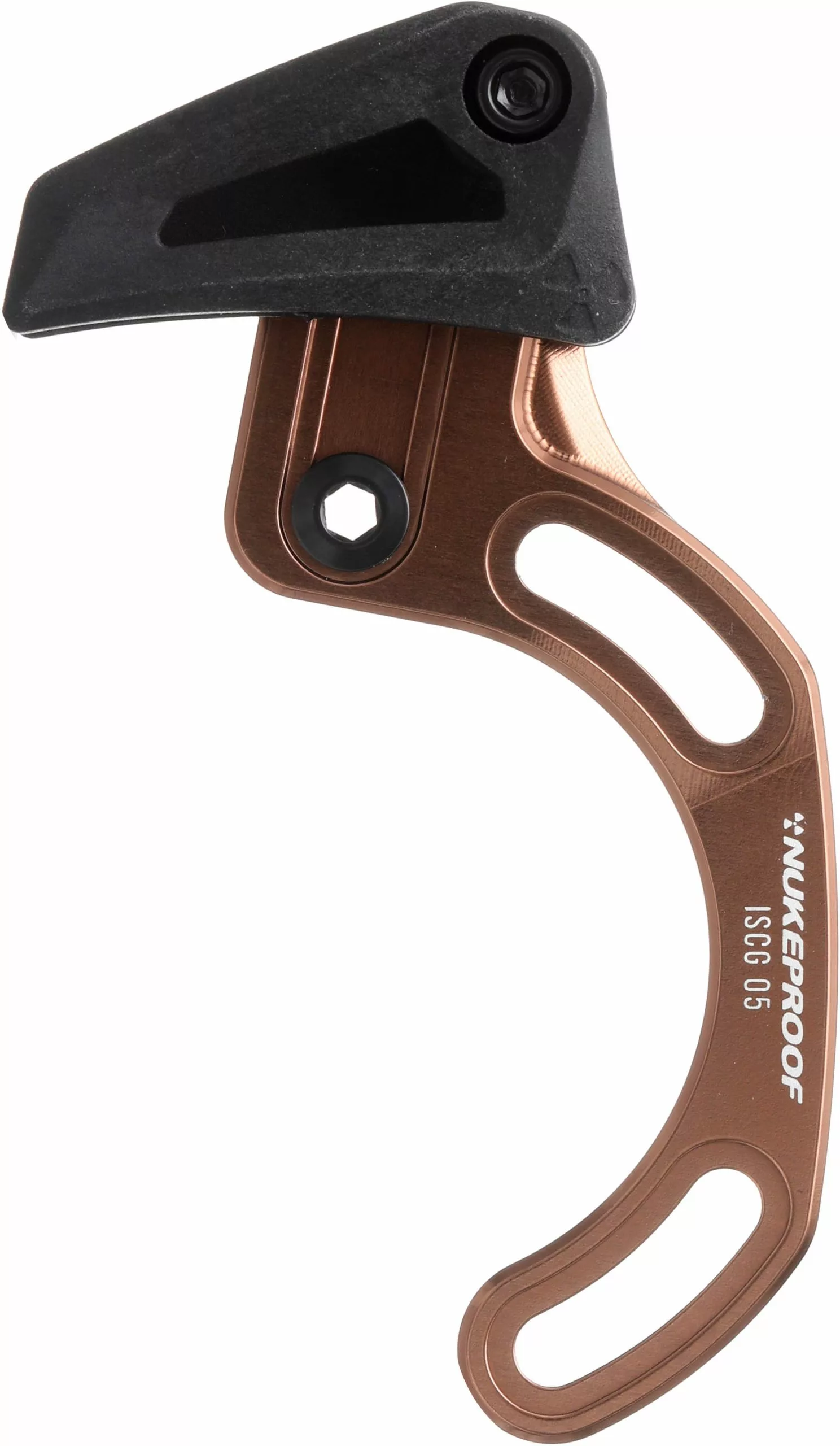 Diese Top Guide Führung ist bereit für rasante MTB-Fahrten und verfügt über eine strapazierfähige Aluminium-Trägerplatte mit einer Composite-Top-Führung. Dies macht sie perfekt, um alle Herausforderungen zu meistern, die mit aggressiven Offroad-Abenteuern verbunden sind. Nukeproof hat dieses Trail-Ready-Modell auch mit einem darin eingegossenen weichen Gummi ausgestattet. Dies reduziert auch den Verschleiß und die Geräuschentwicklung Ihrer Kette und erhöht deren Lebensdauer.