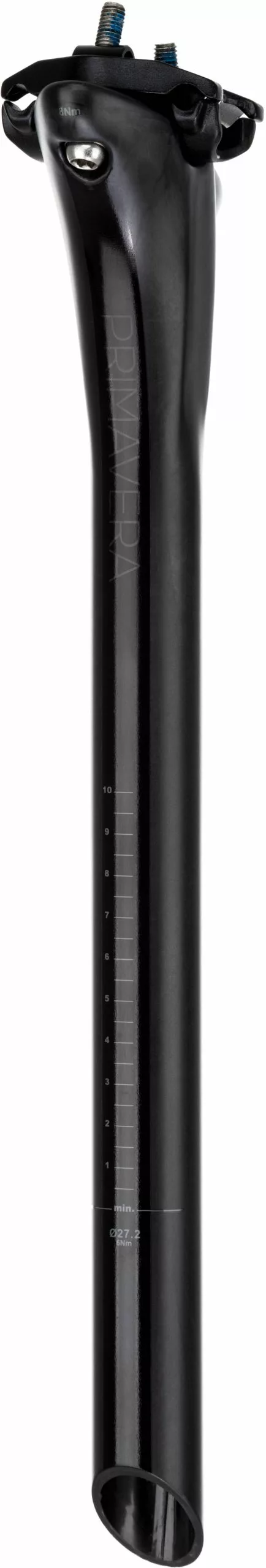 Die Primavera Carbon Sattelstütze passt auf eine Vielzahl von Rennrad-, Triathlon- und Cyclo-X-Fahrrädern. Die Länge von 350 mm bietet zahlreiche Einstellmöglichkeiten.