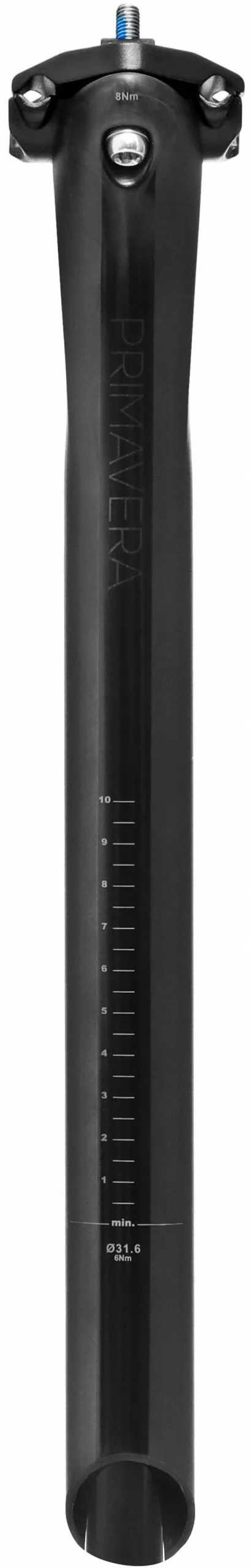 Die Primavera Carbon Sattelstütze passt auf eine Vielzahl von Rennrad-, Triathlon- und Cyclo-X-Fahrrädern. Die Länge von 350 mm bietet zahlreiche Einstellmöglichkeiten.