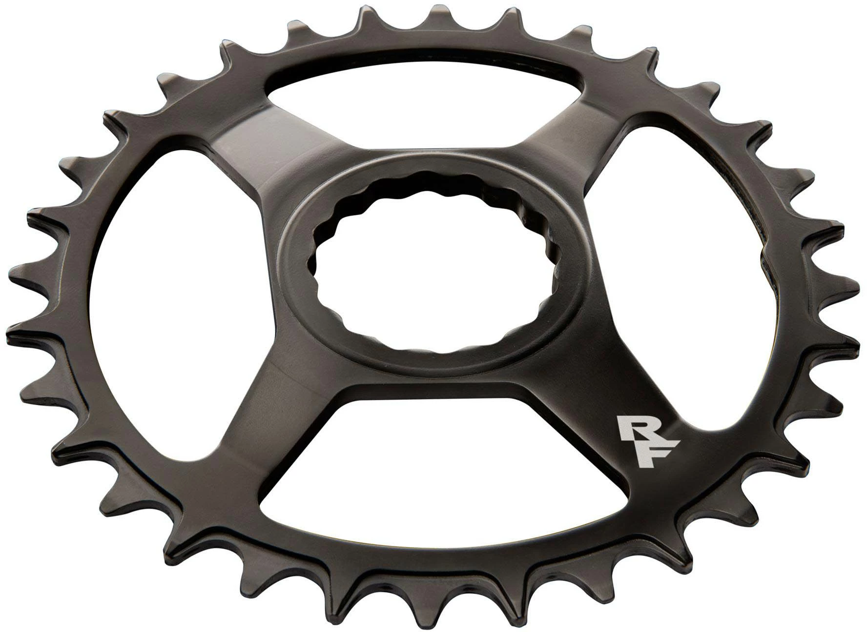 All Easton rings feature the Cinch Direct Mount System making a swap between ring sizes or even between double ring configurations a fast and simple procedure. Its individual tooth profile has moved from the traditional symmetrical shape to a more directional specific design with the intention to create a positive chain roller engagement to help with chain retention, critical to prevent chain slip and bounce over rough terrain. Additionally, this Race Face Cinch direct mount chainring uses its Cinch DM system to provide significant weight savings by eliminating the material overlap and extra bolt hardware that is required for a traditional spider with chainring configuration.