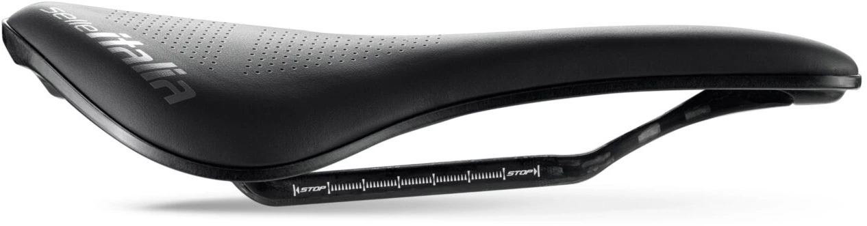 The Kit Carbonio version has a 10mm longer rail for greater travel in saddle adjustment.