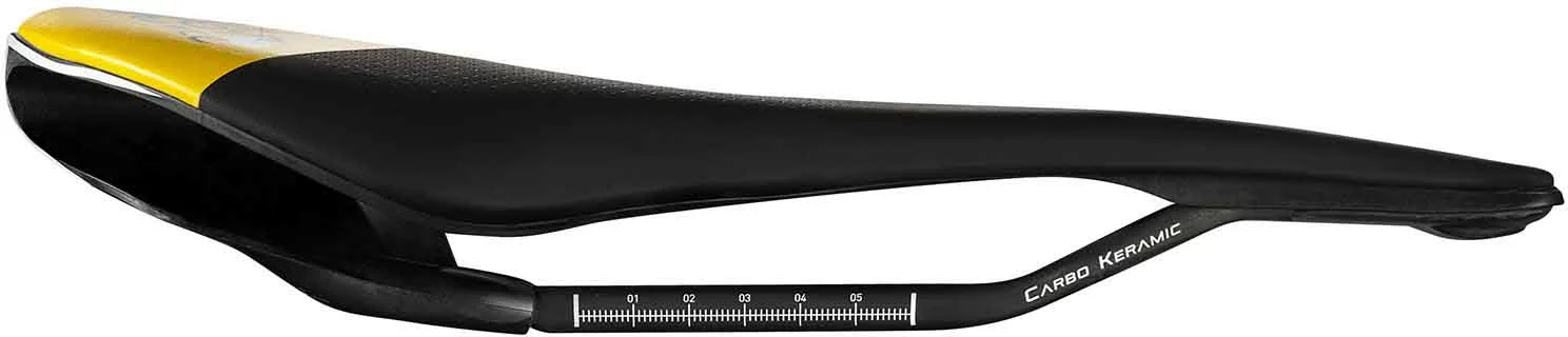 Dieses hochmoderne Modell bringt Sie auf das Podium und verfügt über einen Fibra-Tek-Bezug, der eine immense Haltbarkeit und Schutz auf den intensivsten Fahrten bietet. Die Carbonschienen sorgen für zusätzliche Festigkeit und die Keramikbeschichtung schützt den Klemmbereich der Sattelstütze vor Punktbelastung und Kratzern.