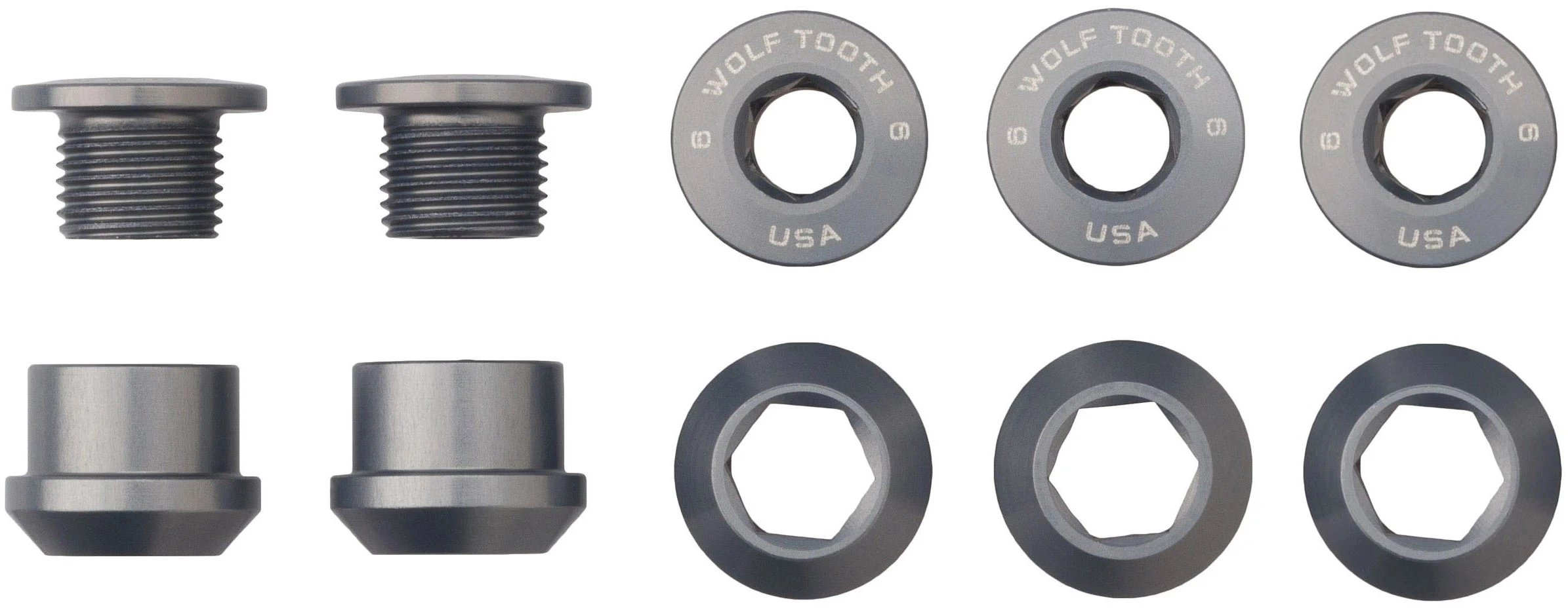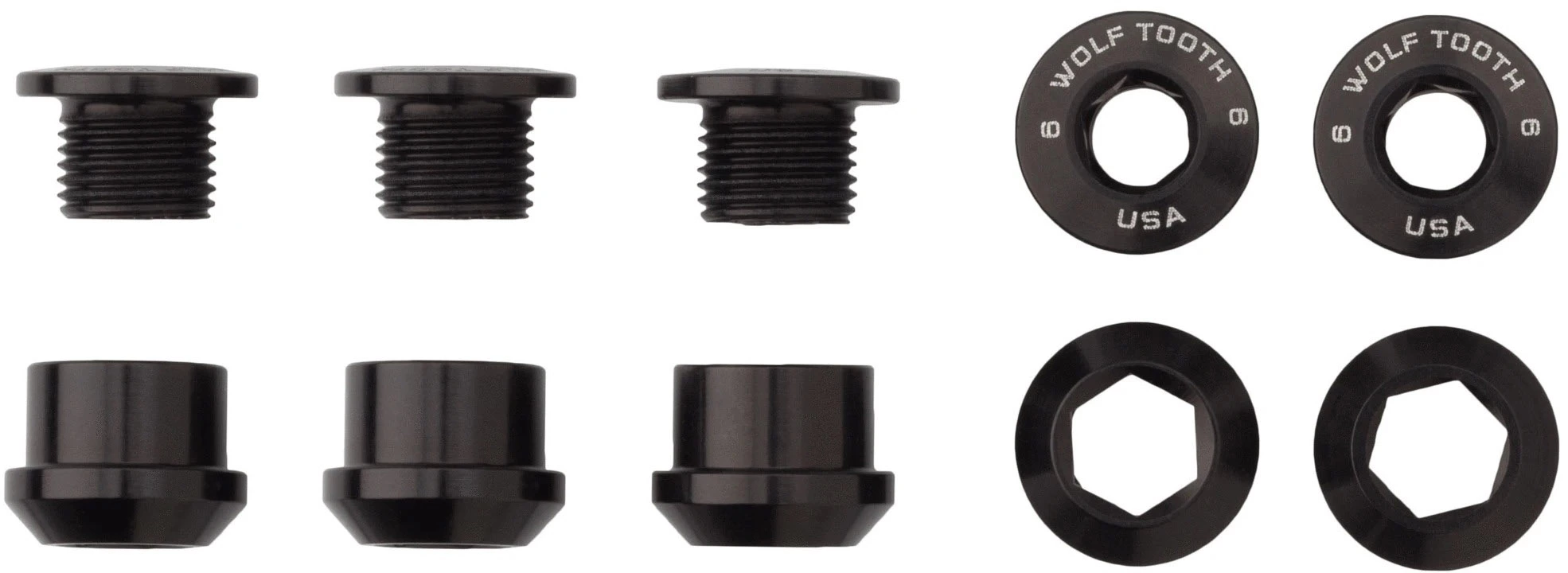 Wolf Tooth designed these bolts to be the best on the market. These single chainring optimised bolts have a 4mm hex socket on the bolt and a 6mm hex socket on the nut, so no spanner is needed. These are 6mm long, so they work perfectly with any bolt on single chainring that does not have threaded standoffs.
