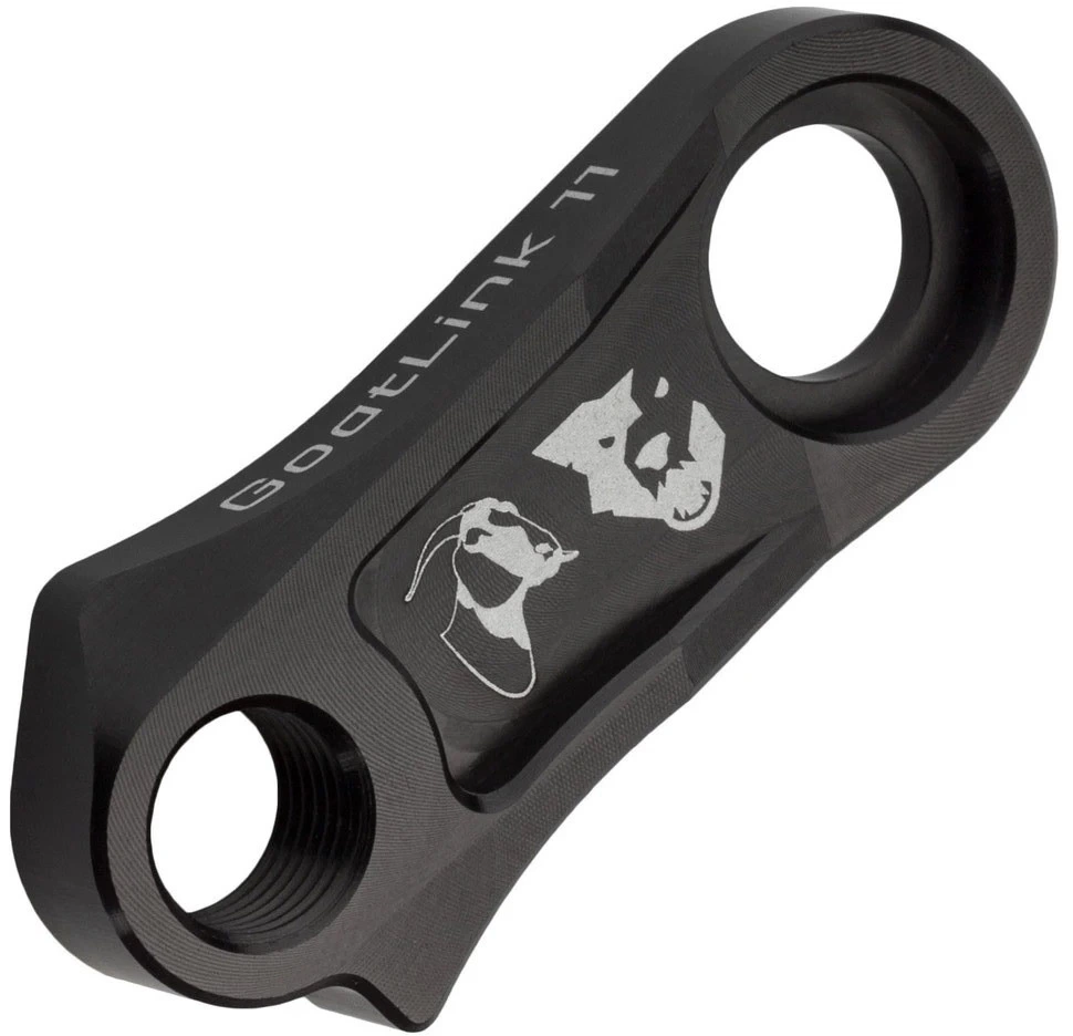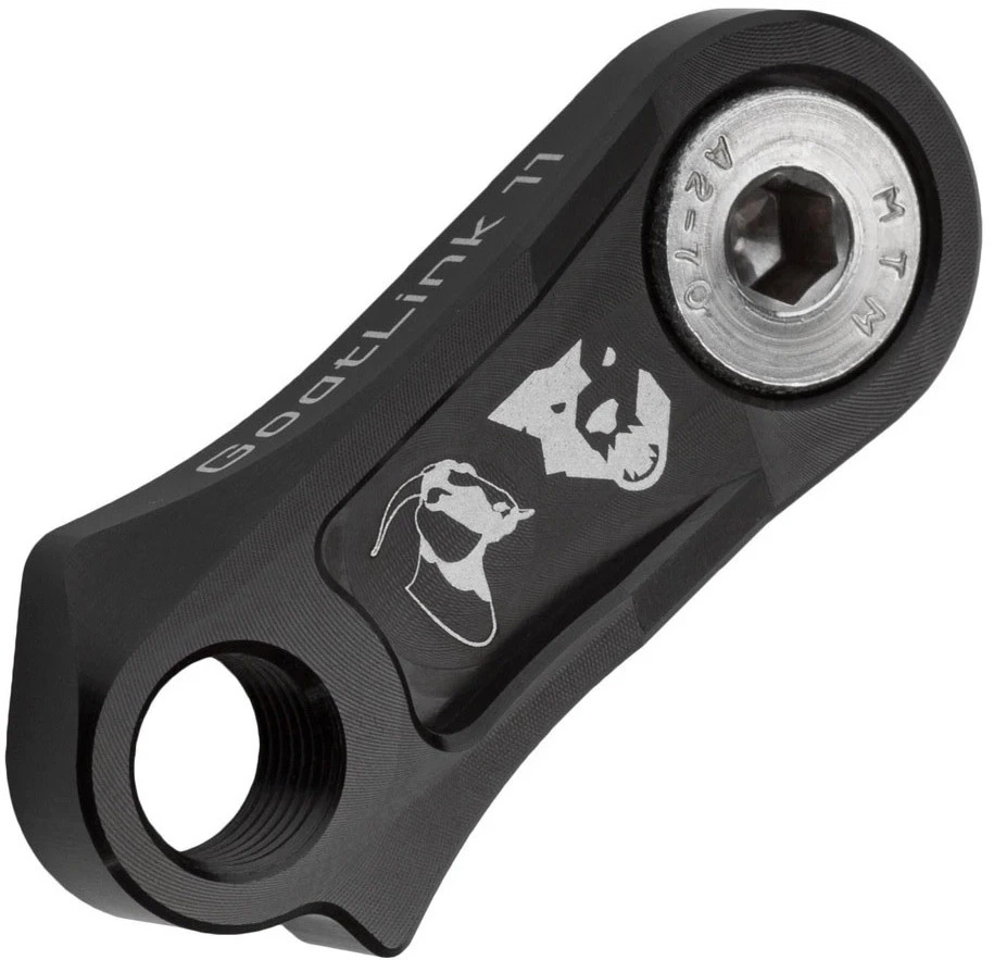 This 11 speed Wolf Tooth GoatLink rear derailleur hanger extension improves long-term shifting performance and makes it possible to run larger range cassettes in an optimal position. It is a hassle-free choice for riders who want to climb steeper hills on a 1x setup.