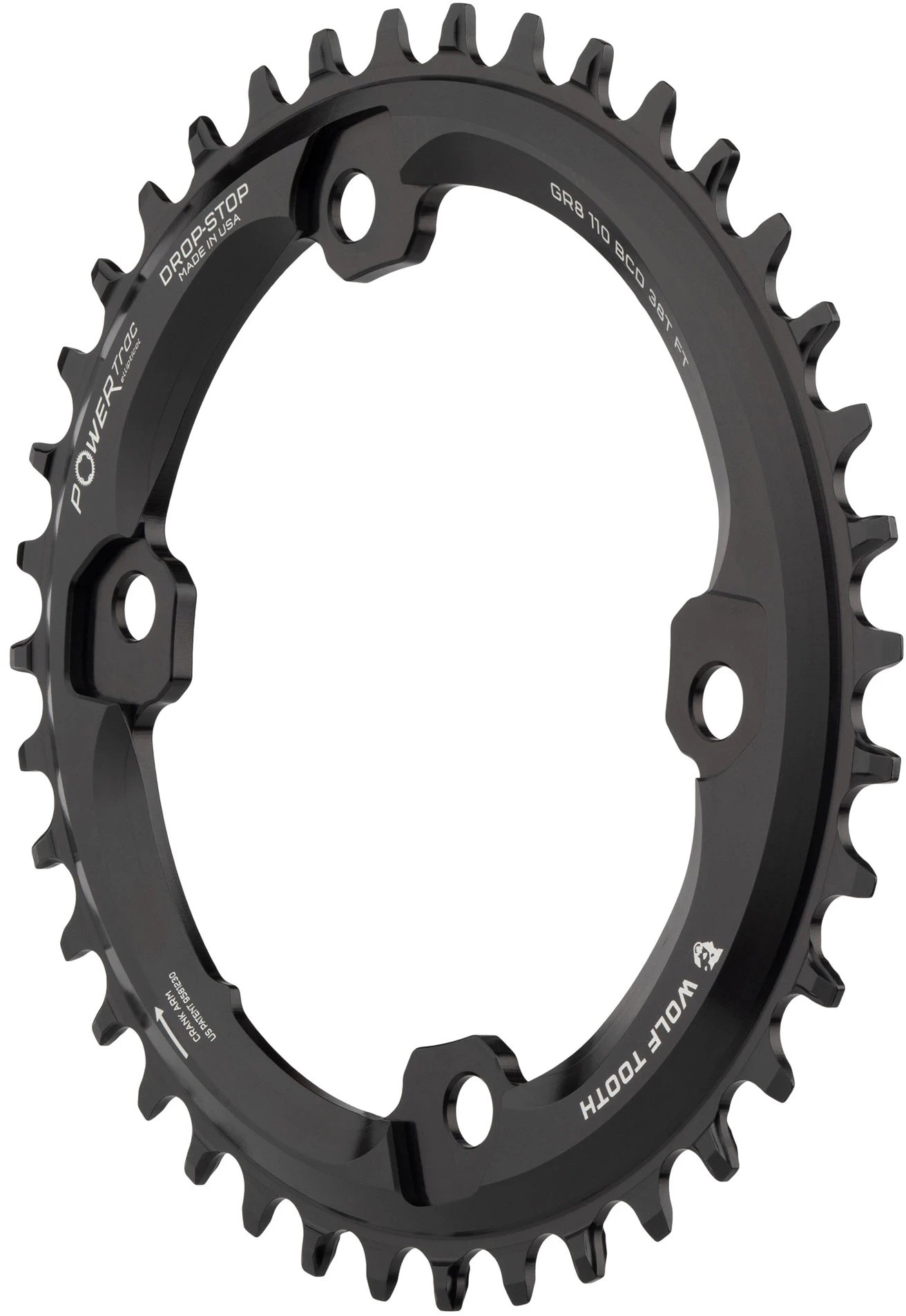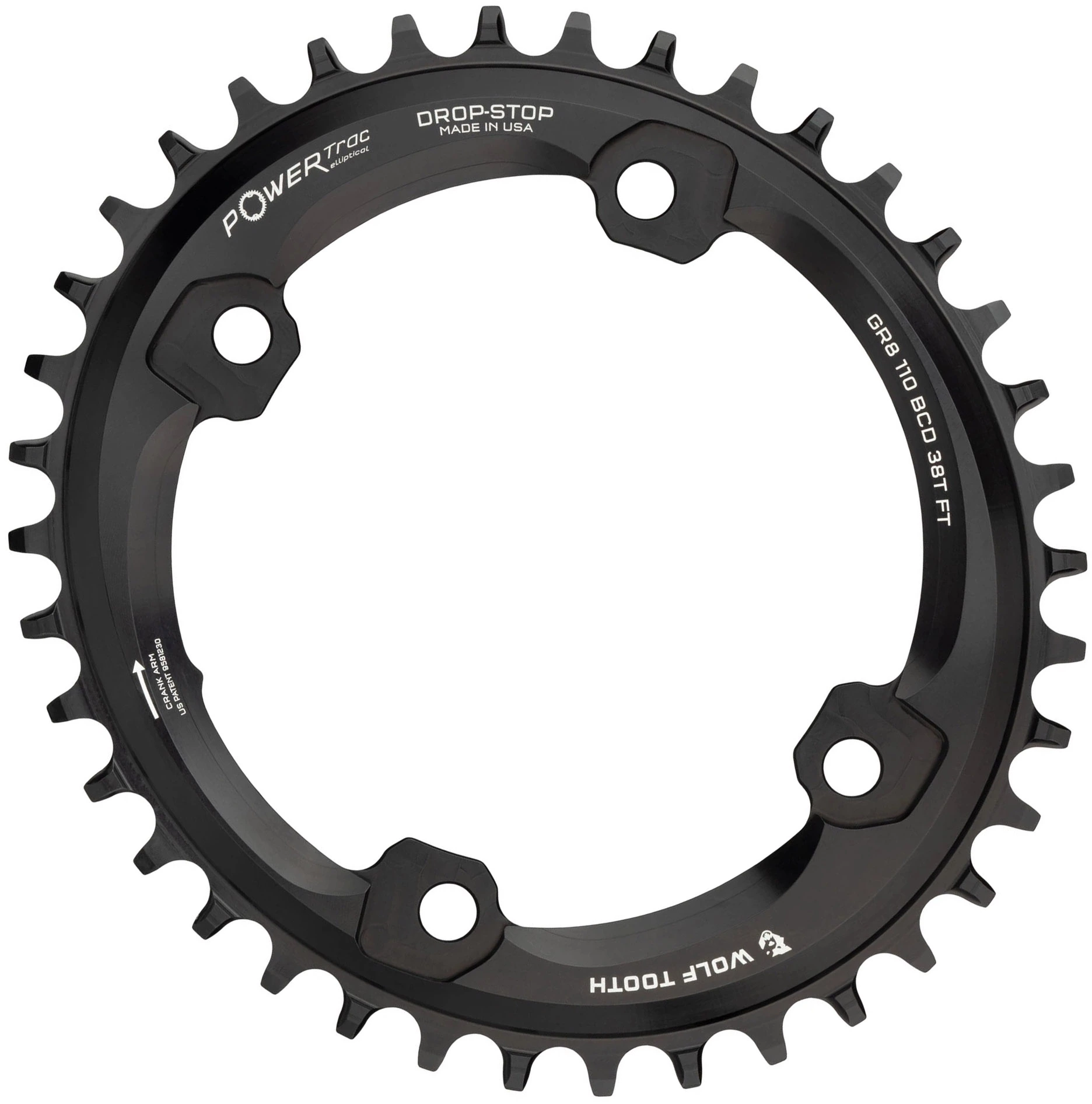 Wolf Tooth’s patented Drop-Stop wide/narrow tooth profile provides the ultimate chain retention and mud shedding ability.